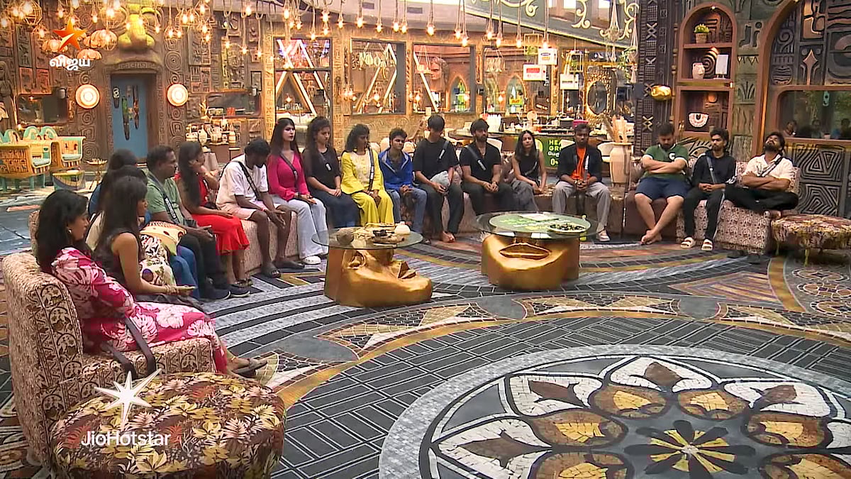 துஷார் நீங்களே மைக் மாட்டுறது இல்ல. அப்றோ எப்படி மத்தவுங்கள Discipline- க்கு கொண்டு வருவிங்க. Discipline இல்லாத வீட்டுக்கு, வீட்டு தலையும் தேவையில்ல. வீட்டு தலை பதவி உங்களிடம் இருந்து பறிக்கப்படுகிறது" என்று அதிரடியாக அறிவிக்கப் போட்டியாளர்கள் அனைவரும் ஷாக்காகி இருகின்றனர்.